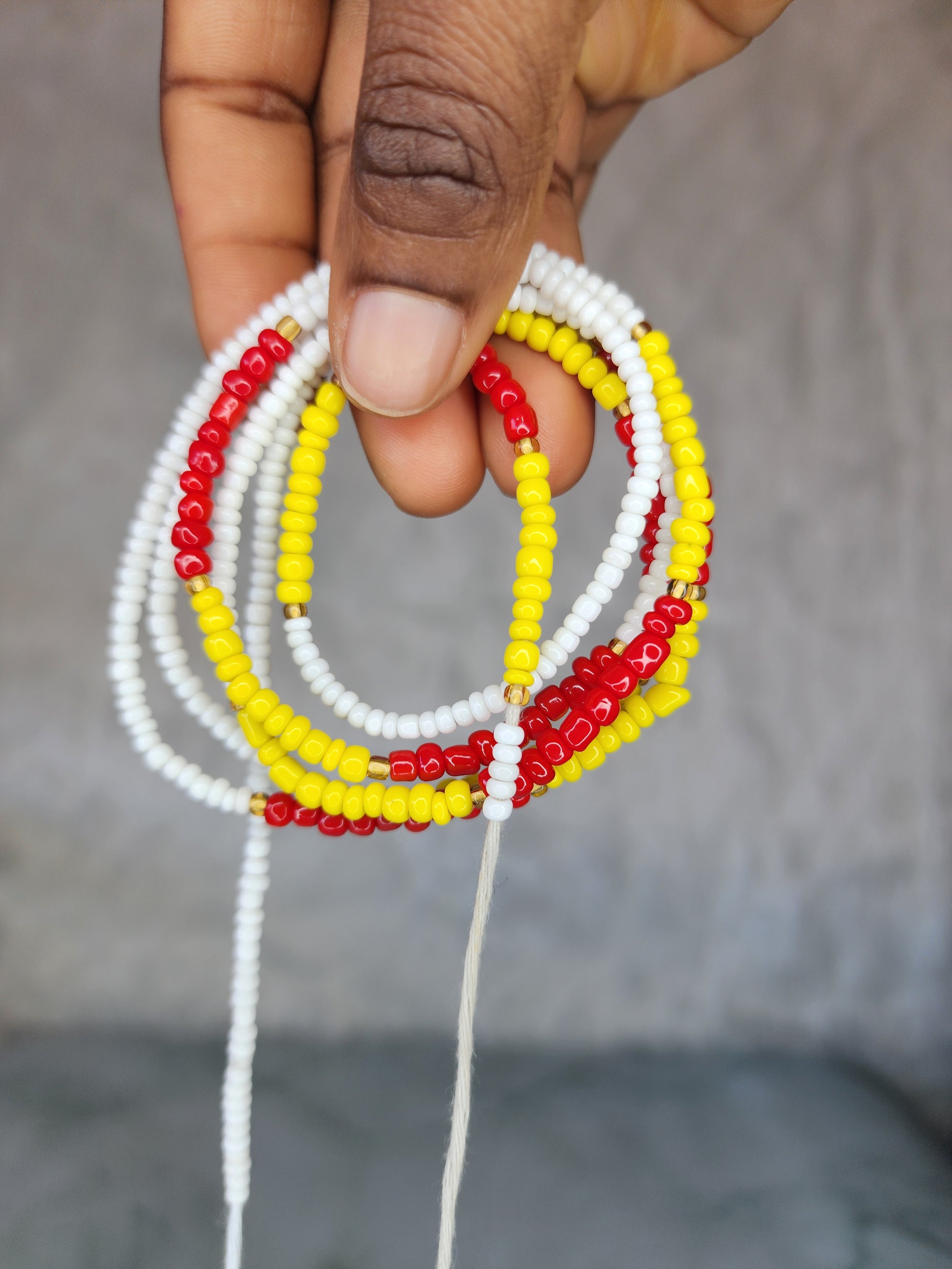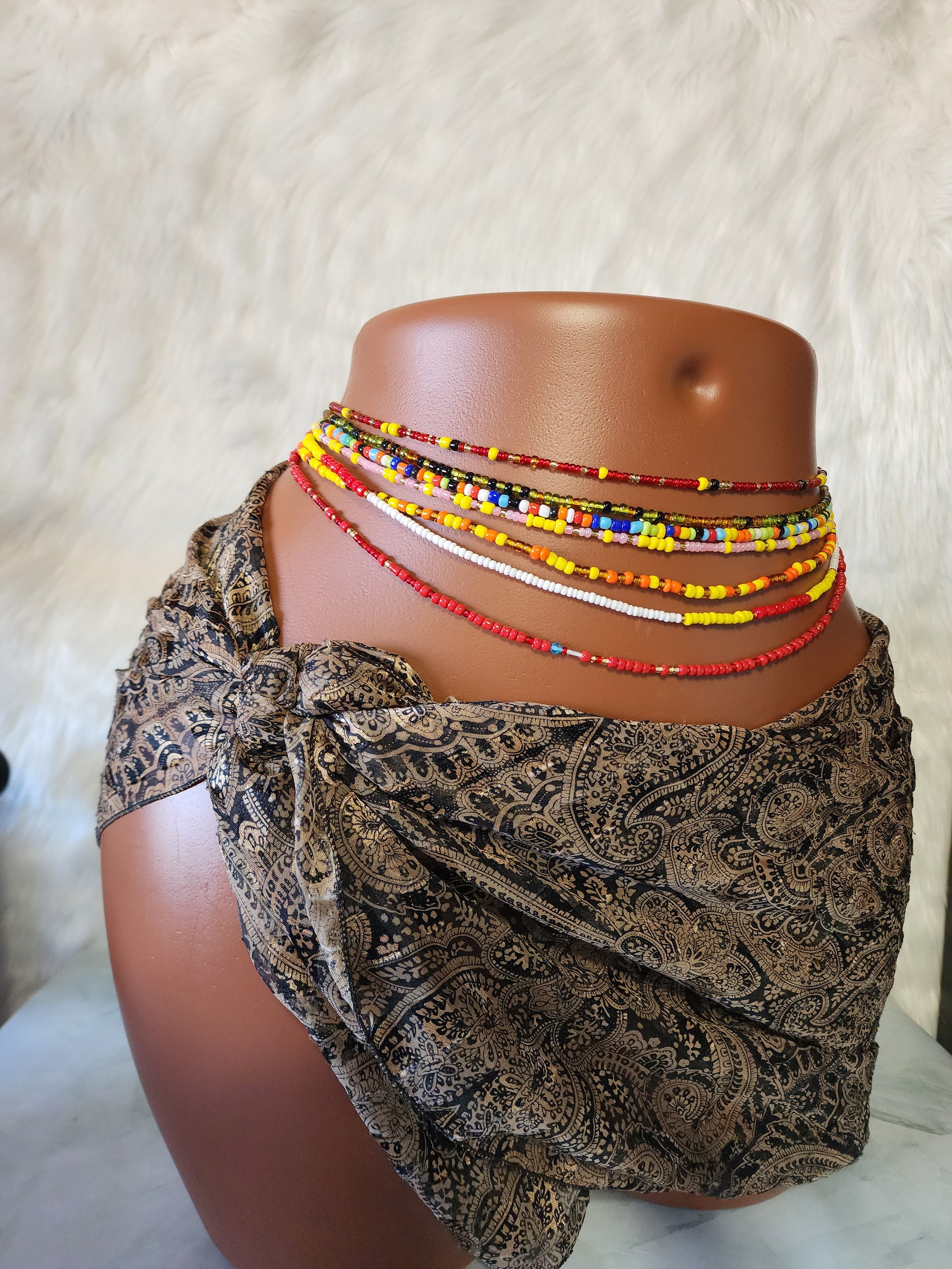These Waist beads are Tie on and come in a maximum length of 50 inches, they are crafted with care and strung on durable cotton thread, perfect for enhancing your natural curves and promoting body positivity. Ideal for self-care rituals, weight loss tracking, and manifestation practices, these beads are not only a stylish accessory but also a meaningful tool for personal growth. Embrace your femininity and elevate your style with these stunning waist beads, perfect for any occasion