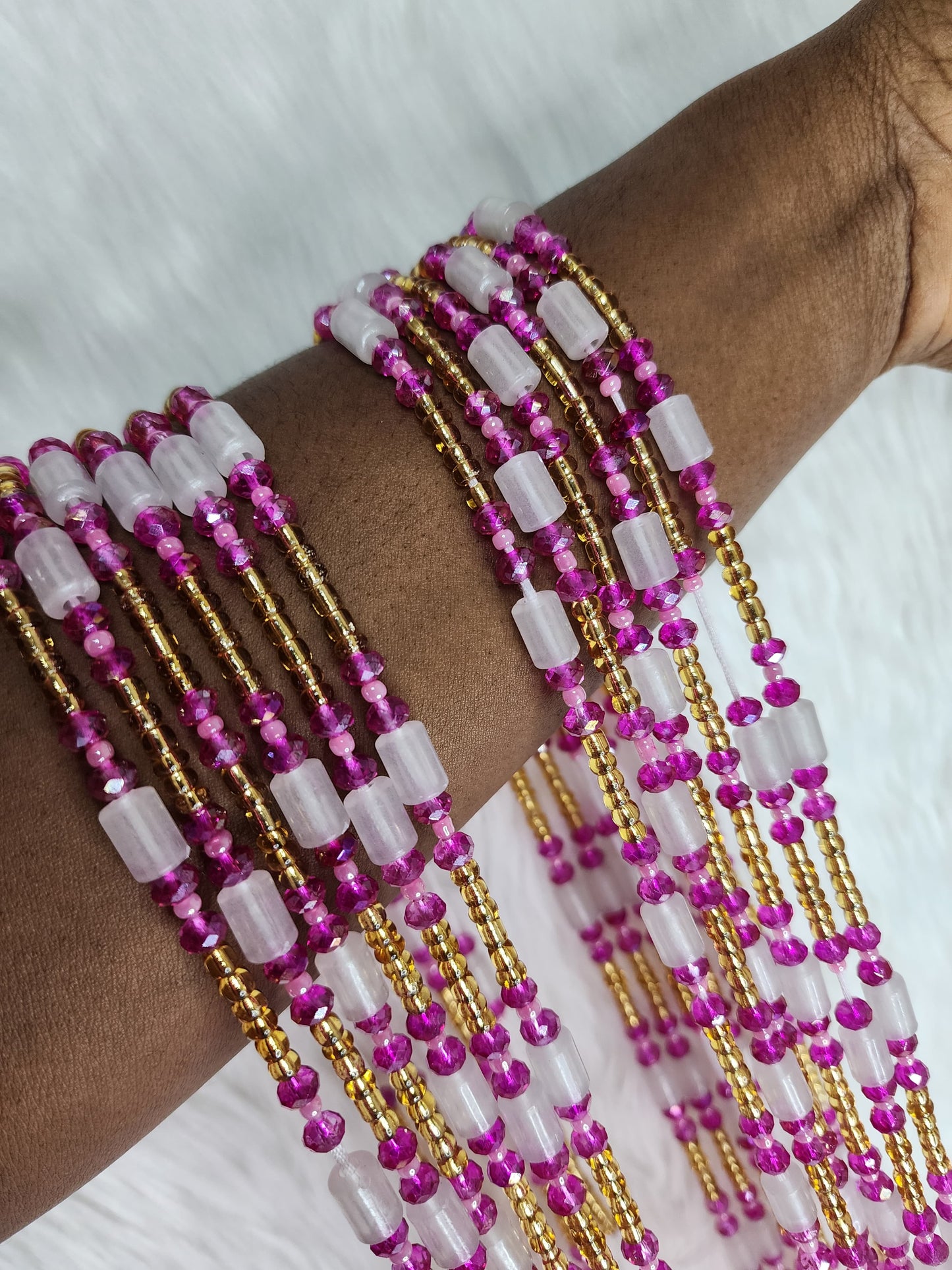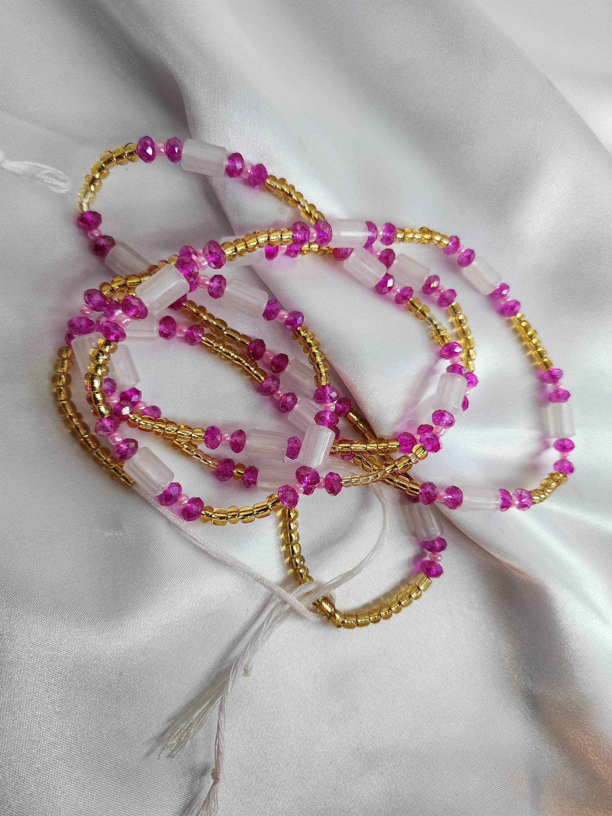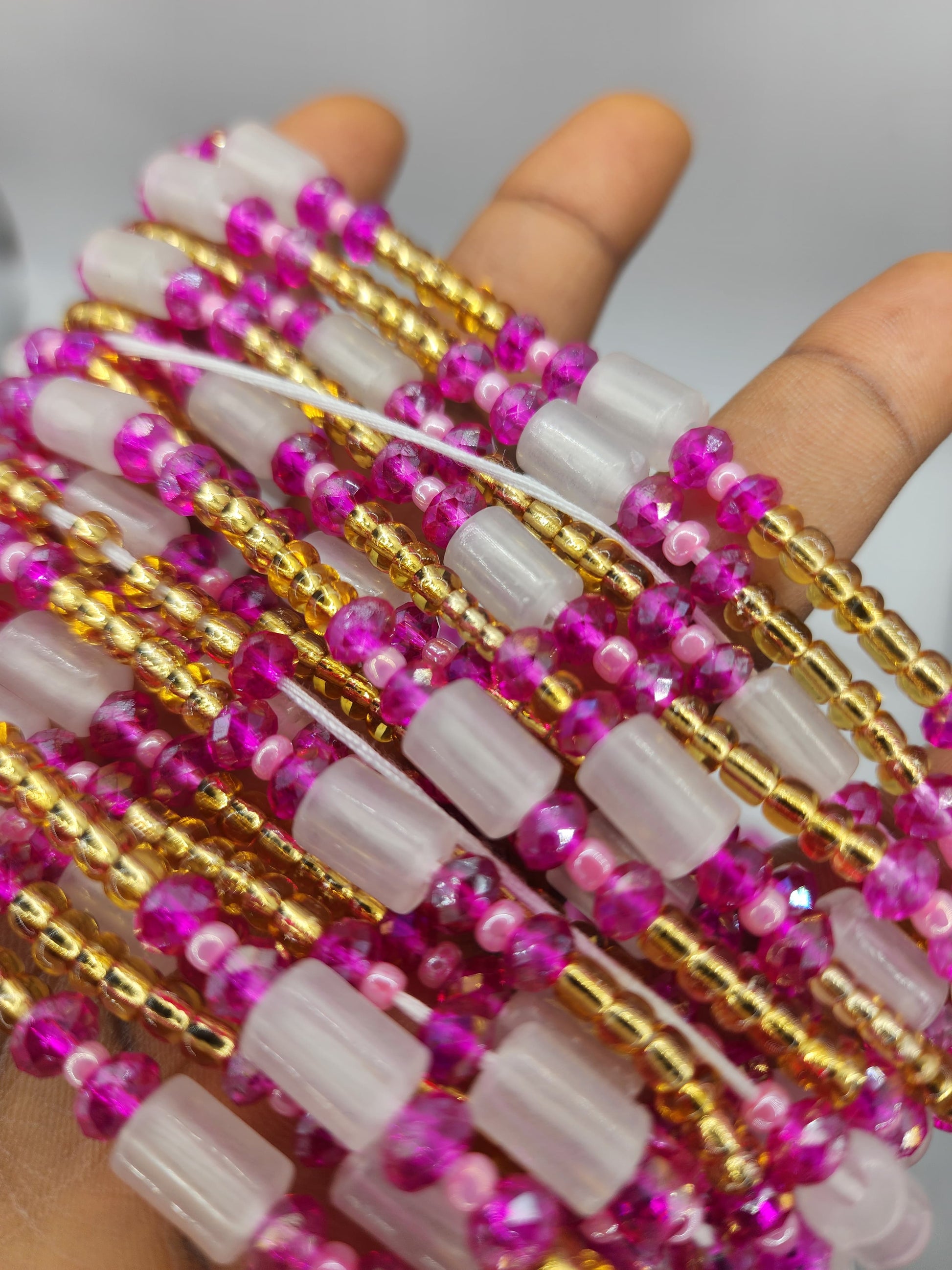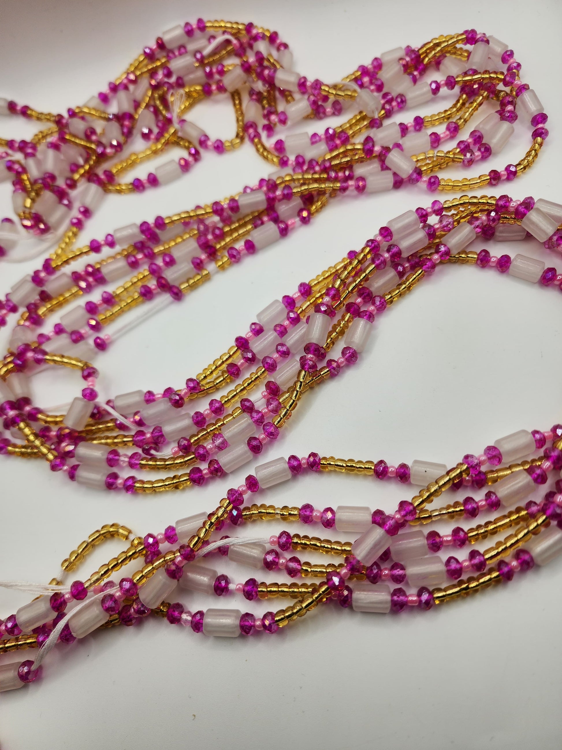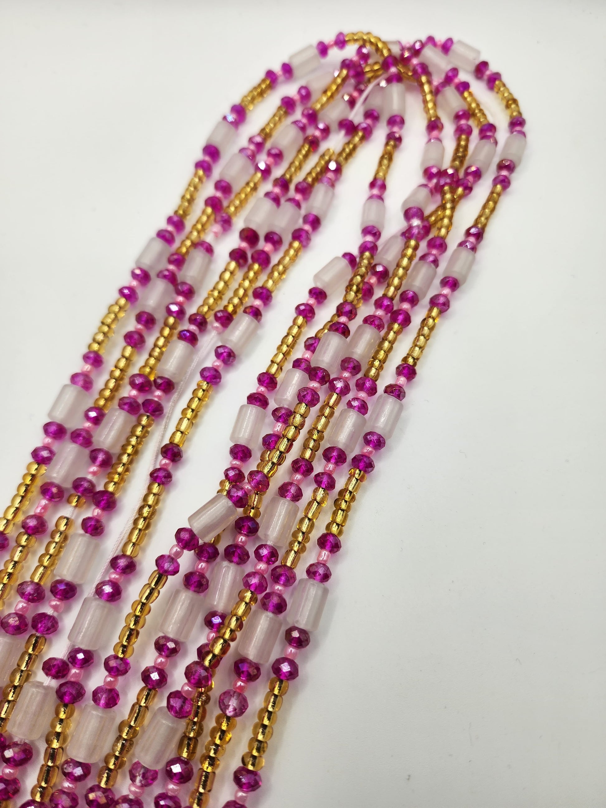 Channel feminine energy with these vibrant pink and gold waist beads. Each strand is handmade to help you celebrate your body, express your style, and honor your inner goddess.