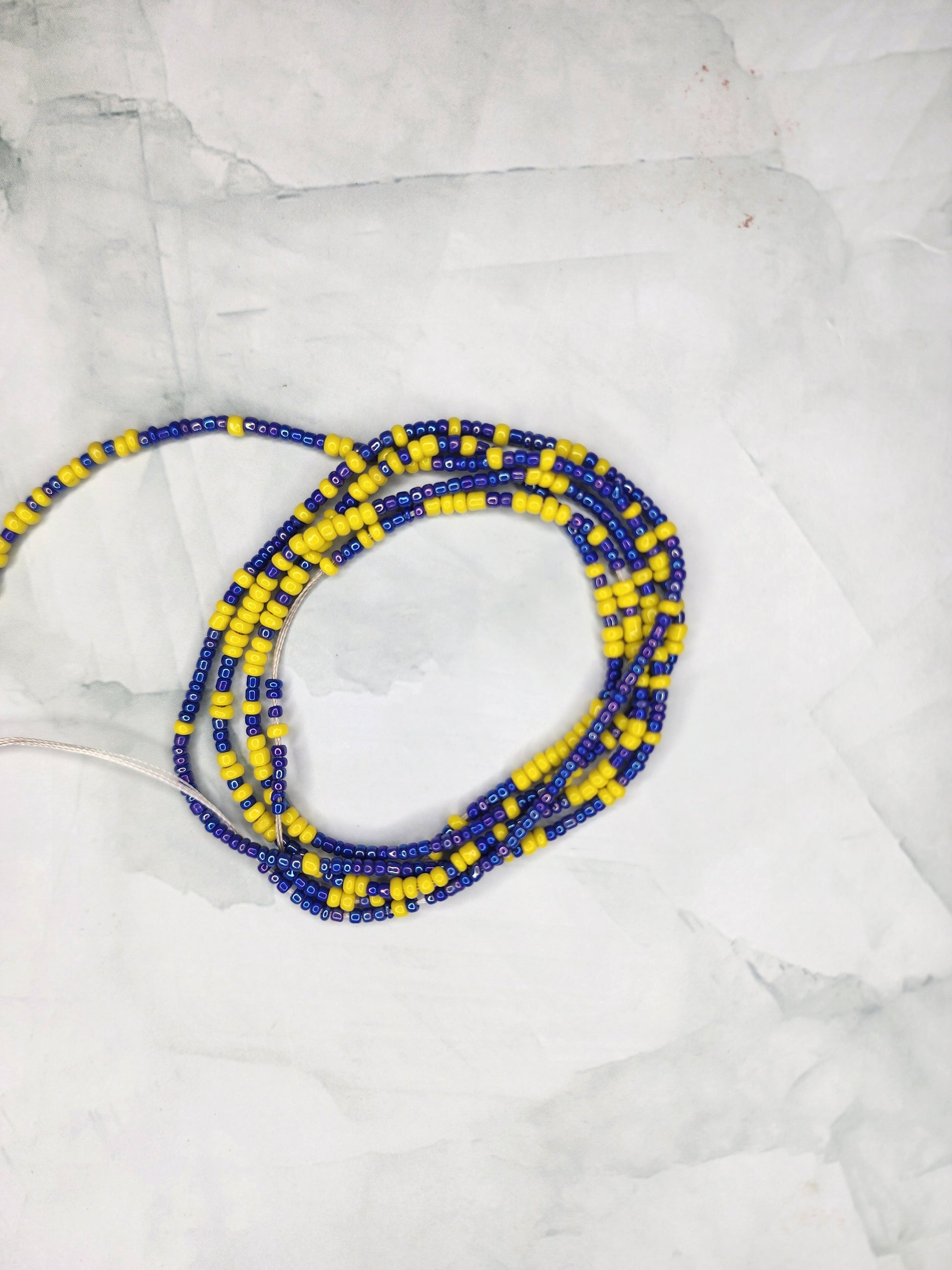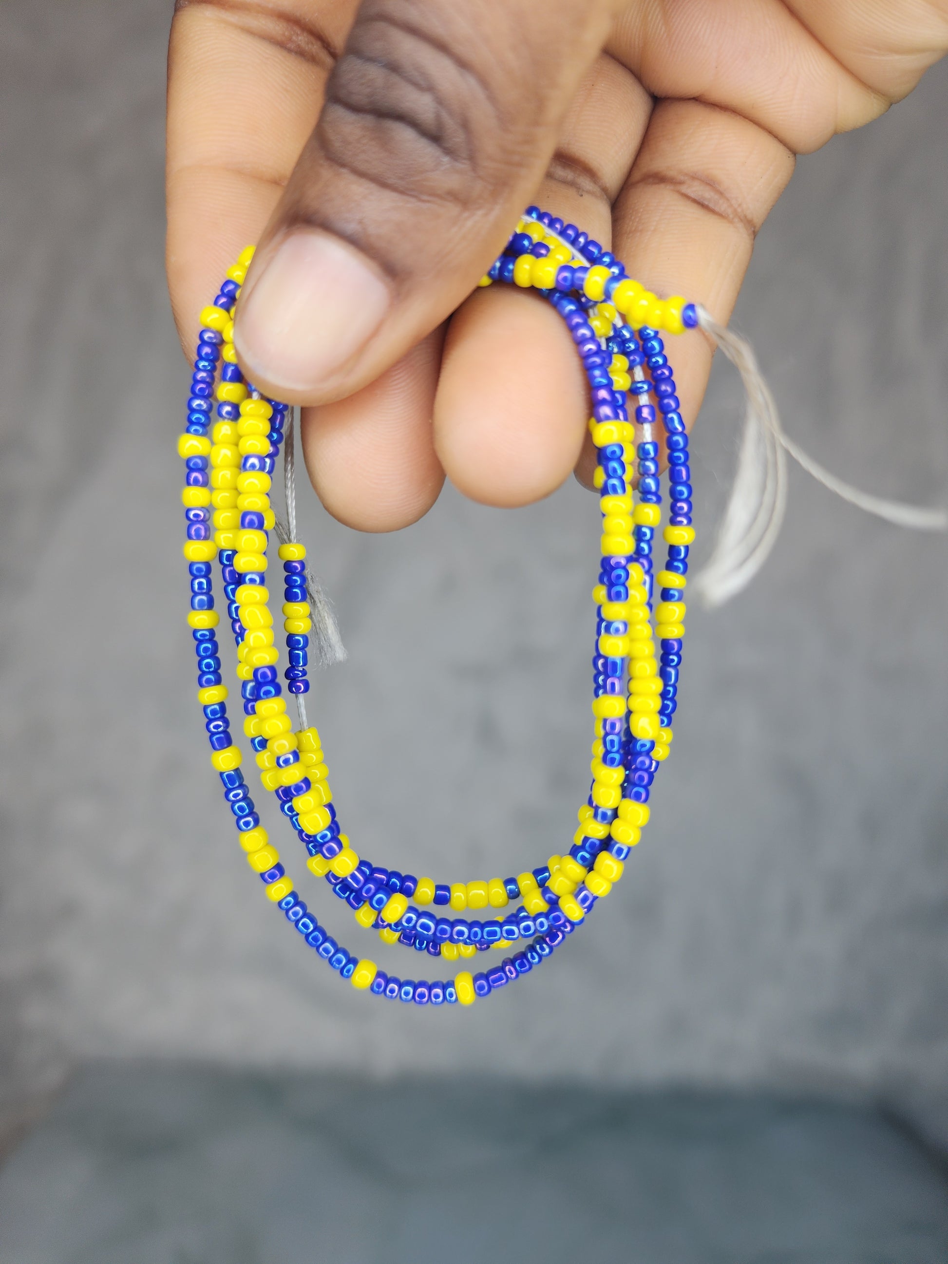 Brighten your waistline with the stunning contrast of Blue & Yellow waist beads. The calming blue paired with sunny yellow represents balance, optimism, and confidence. Each bead is handcrafted for quality and comfort, making them ideal for layering or wearing solo. Adjustable and versatile, these waist beads are perfect for self-expression, celebration, or as a thoughtful gift.