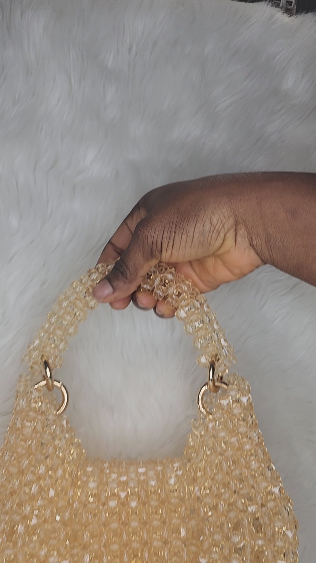 Featuring a modern curved design and sparkling gold beads, this bag is both stylish and versatile, ideal for weddings, cocktail parties, or any occasion that calls for a touch of sophistication.