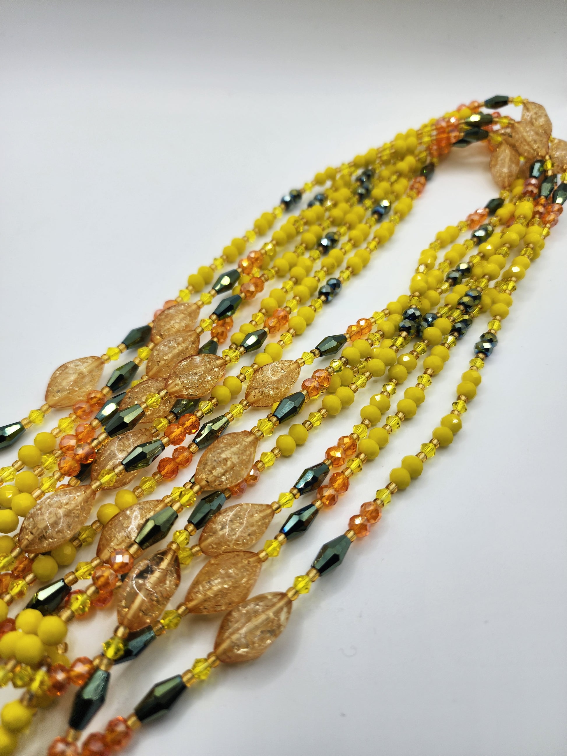 Brighten your look with our radiant yellow and orange waist beads. These handcrafted waist beads feature a vibrant mix of yellow and orange beads, accented with unique gold and black details, creating a lively and captivating accessory. Perfect for body shaping, weight loss tracking, and enhancing your natural curves, these waist beads are more than just jewelry—they're a celebration of femininity and heritage.