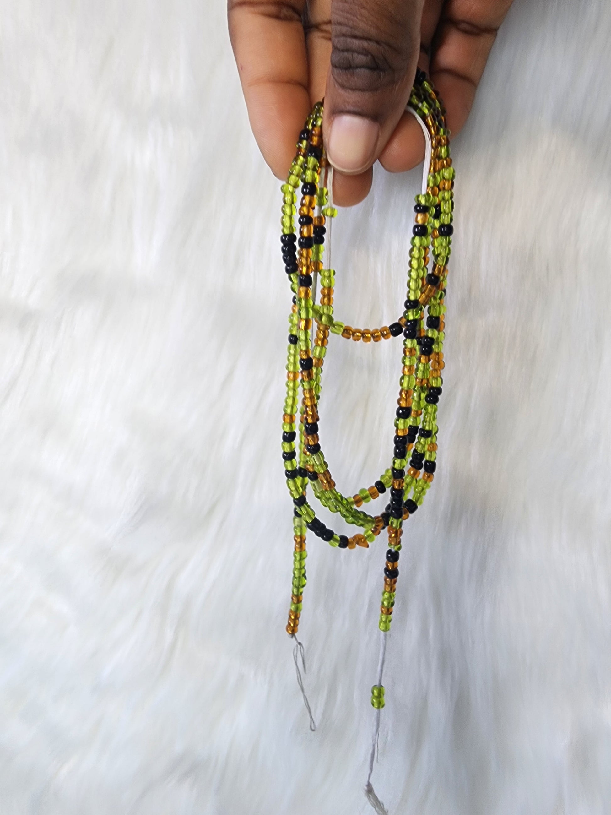 Green represents growth and renewal, black symbolizes strength and resilience, and gold signifies confidence and abundance. Adjustable and comfortable, these waist beads are perfect for everyday wear, layering, or marking special milestones. Wear them as a reminder of your personal power and journey toward growth.