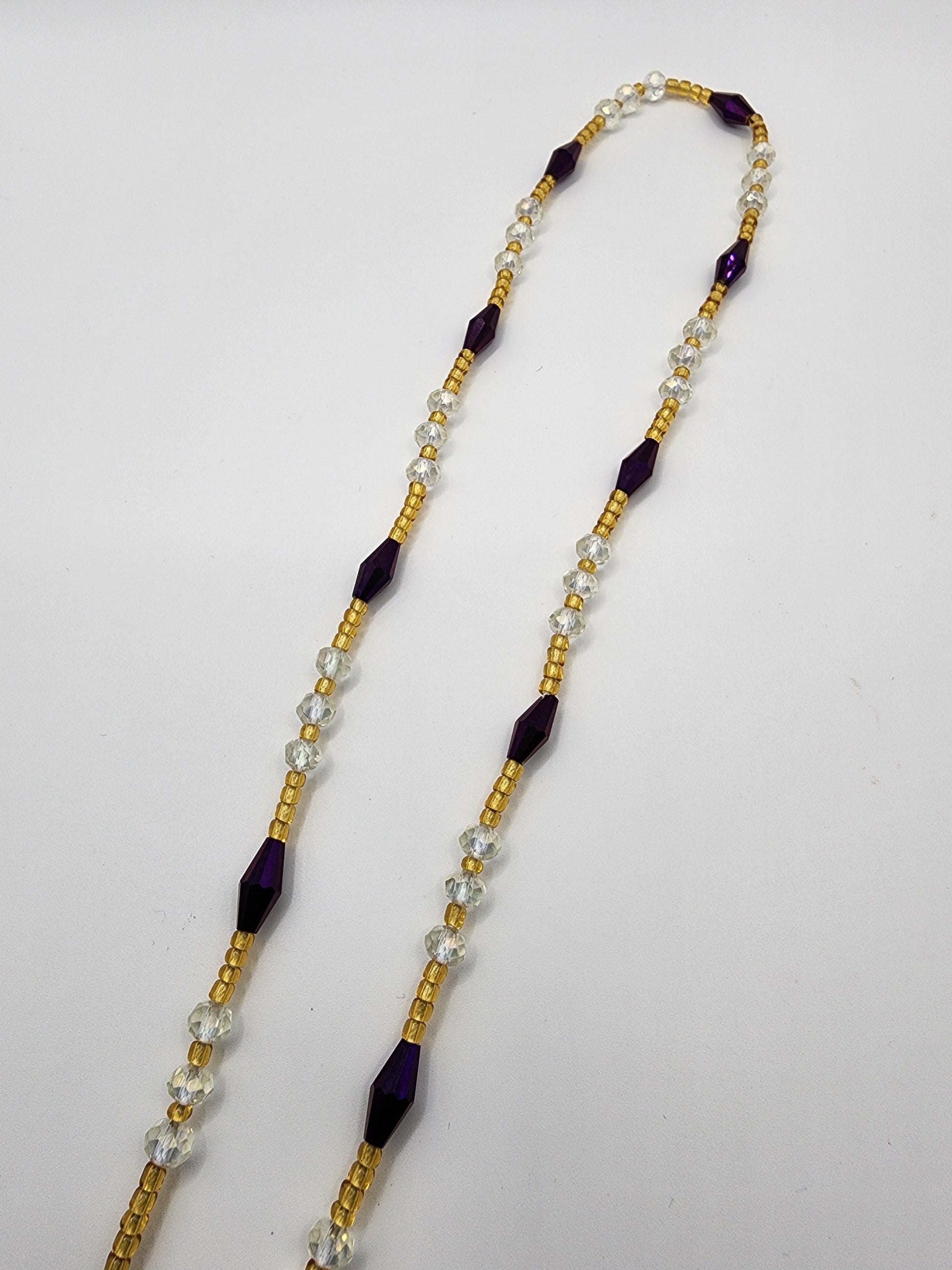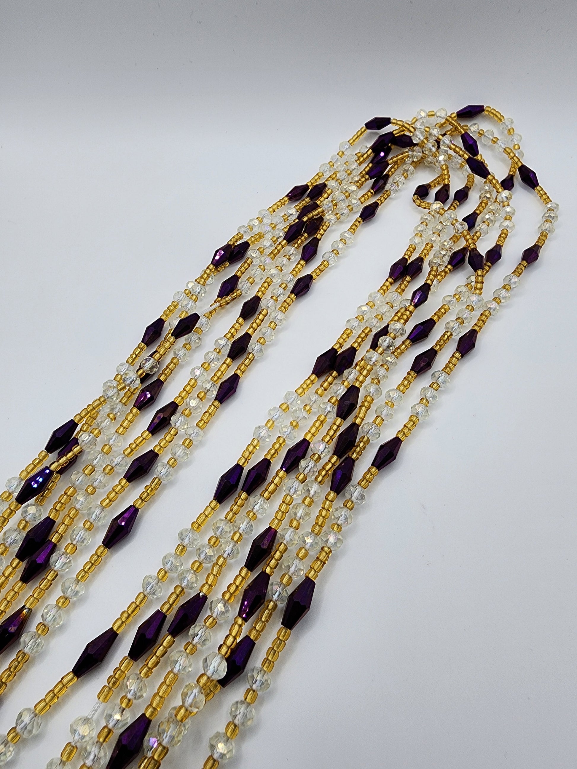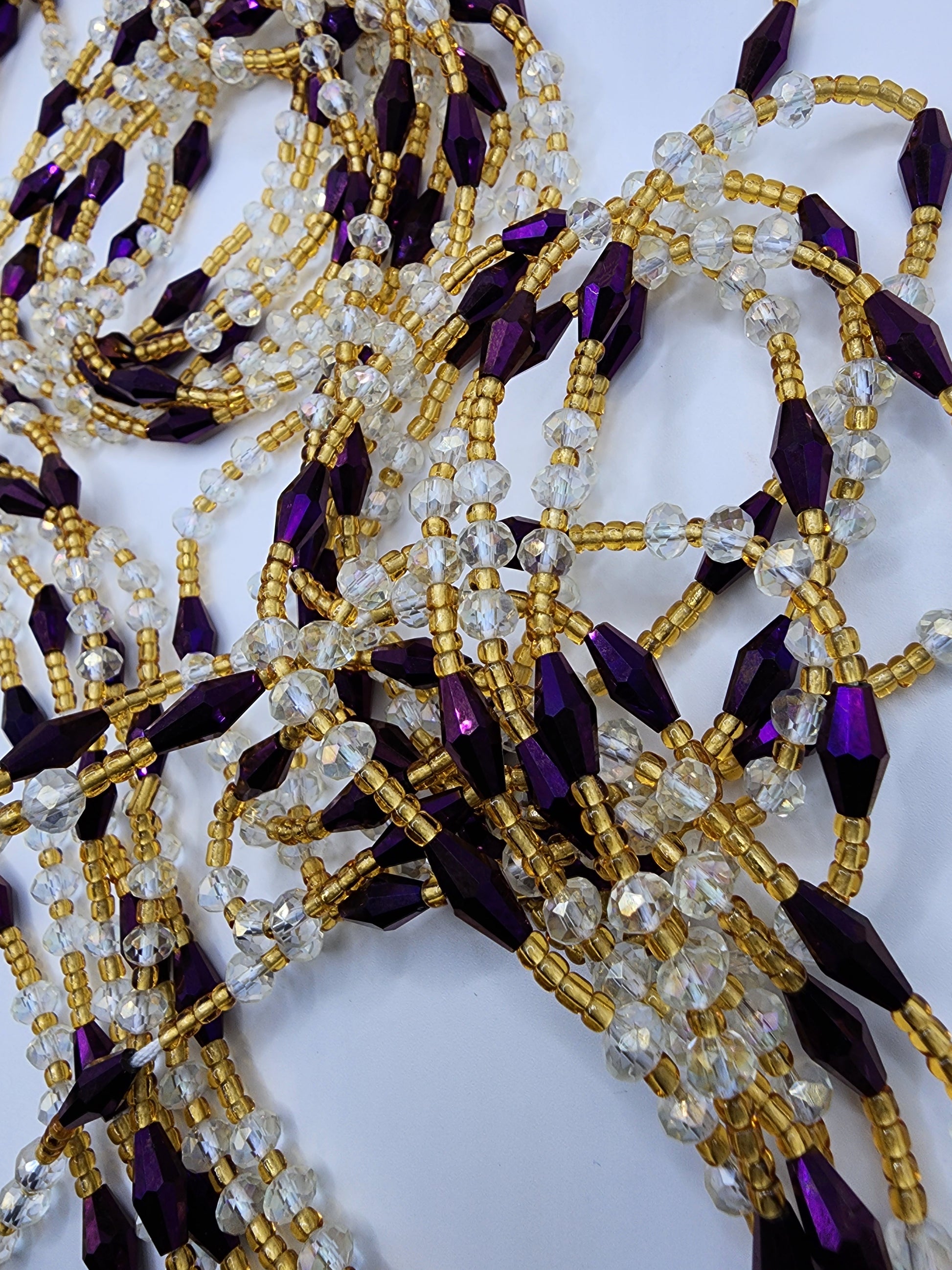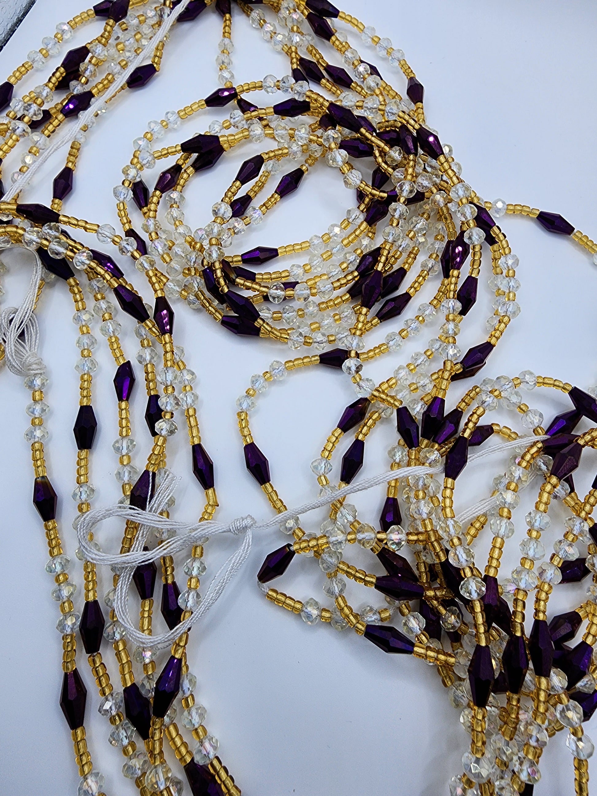 Our Elegant Purple and Gold Beaded Waist bead. This stunning waist bead features a beautiful combination of rich purple beads, sparkling crystal beads, and luxurious gold accents. Each strand is carefully handcrafted to ensure a perfect fit and exceptional quality. Waist beads are not only a fashion statement but also a powerful tool for self-care, manifestation, and weight loss.