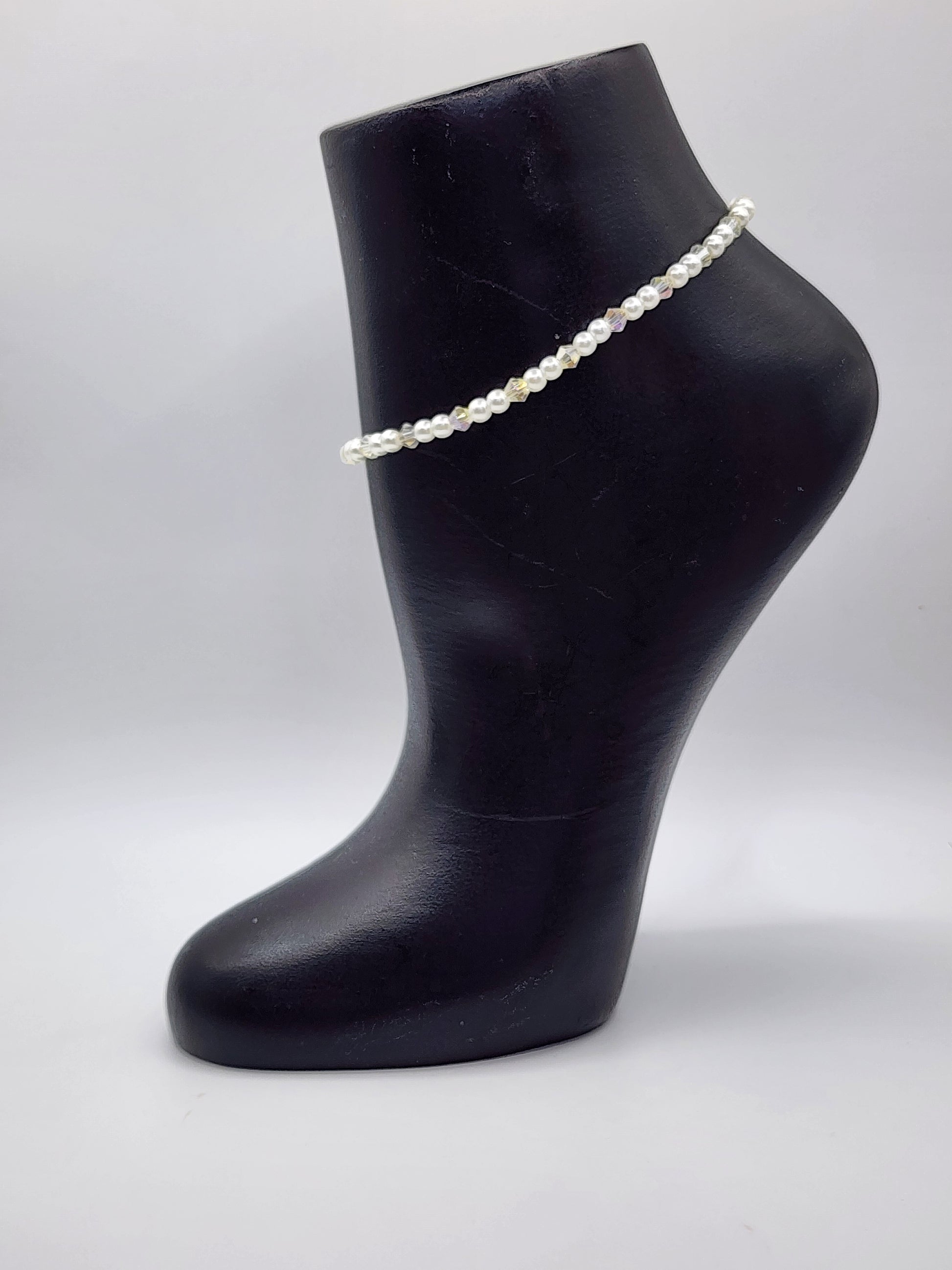 The elastic design ensures a comfortable and secure fit for any ankle size, making it a versatile addition to your jewelry collection. Perfect for both everyday wear and special occasions, this anklet adds a touch of grace and elegance to any outfit. Whether you're treating yourself or looking for a thoughtful gift for a loved one, this anklet is sure to impress. Order now and enjoy the perfect blend of beauty and comfort with our Delicate Pearl and Crystal Elastic Anklet.