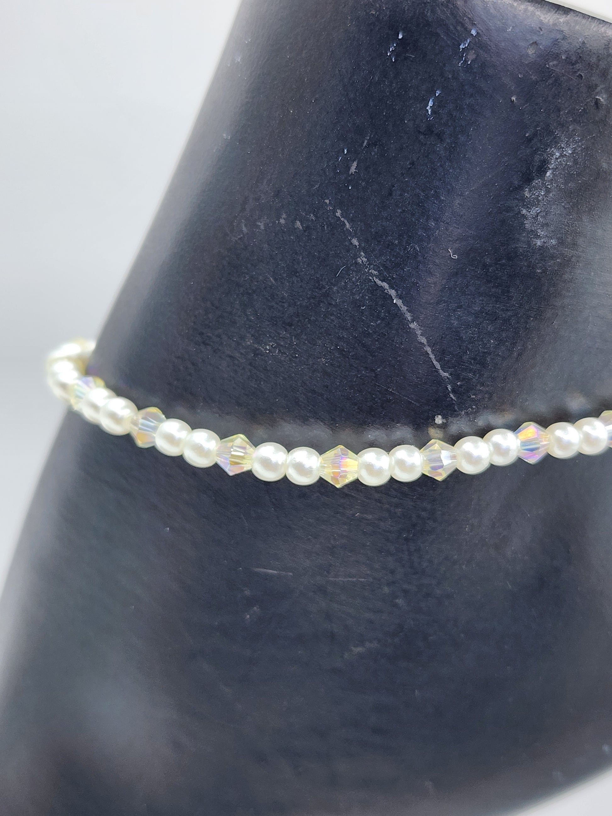 Delicate Pearl and Crystal Elastic Anklet for Women