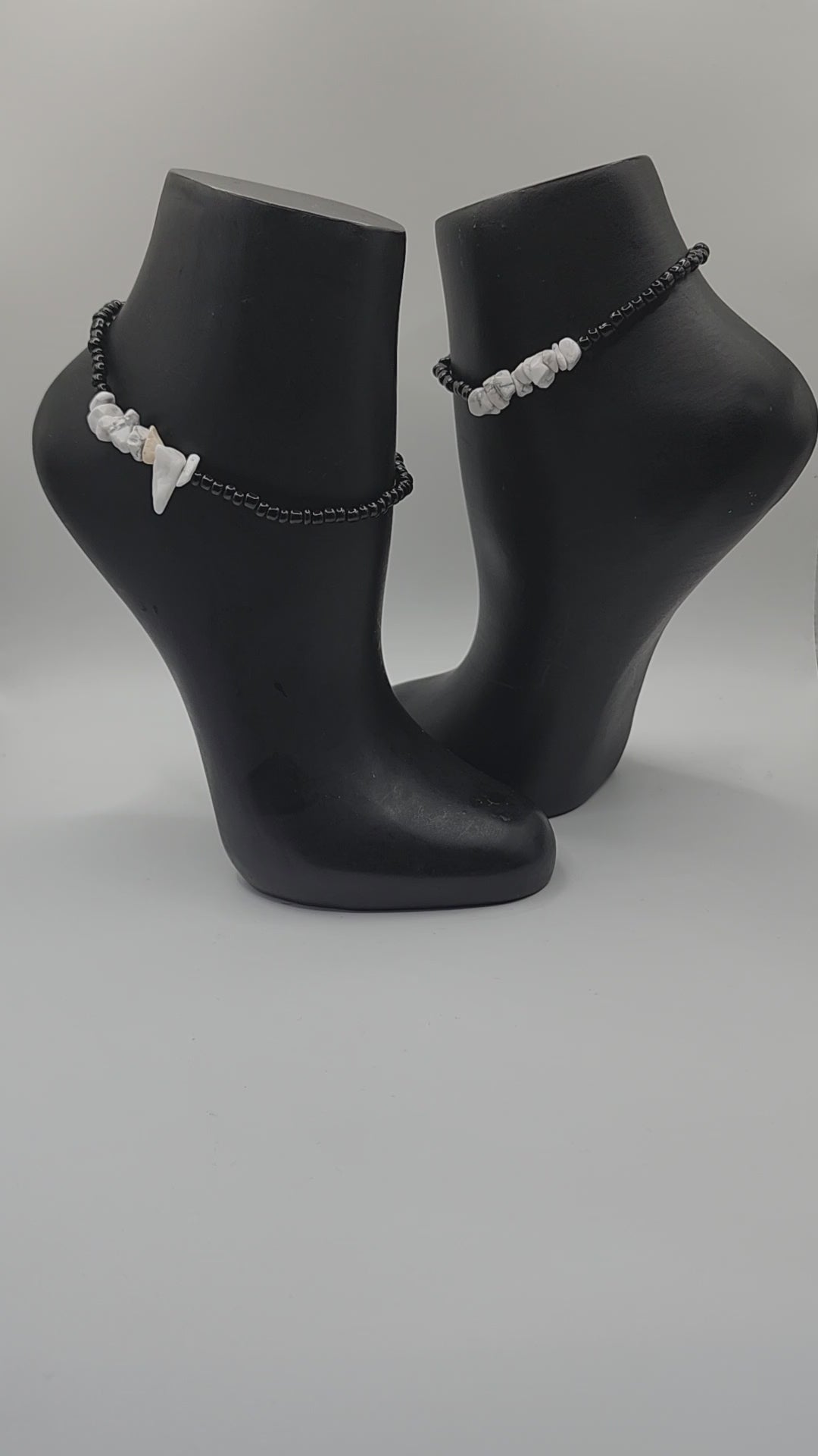 Experience the benefits of natural stones with this stylish anklet. The white stones are believed to promote emotional healing and clarity, while the black beads provide protection and grounding. Treat yourself or gift this beautiful anklet to someone special. Embrace the beauty and positive energy of handmade jewelry with our elegant black and white beaded anklet.